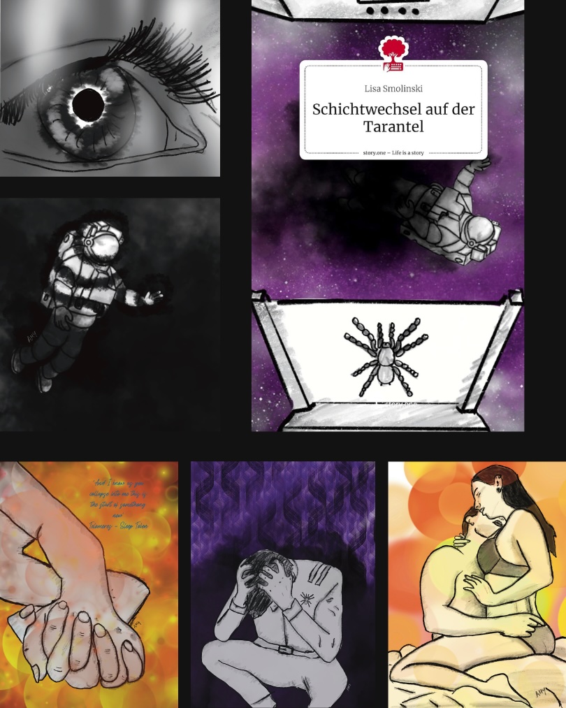 Dieses Illustrationsprojekt entstand für den Science-Fiction-Kurzroman „Schichtwechsel auf der Tarantel“ von Lisa Smolinski und ist eng an die emotionale und psychologische Ebene der Geschichte gebunden.