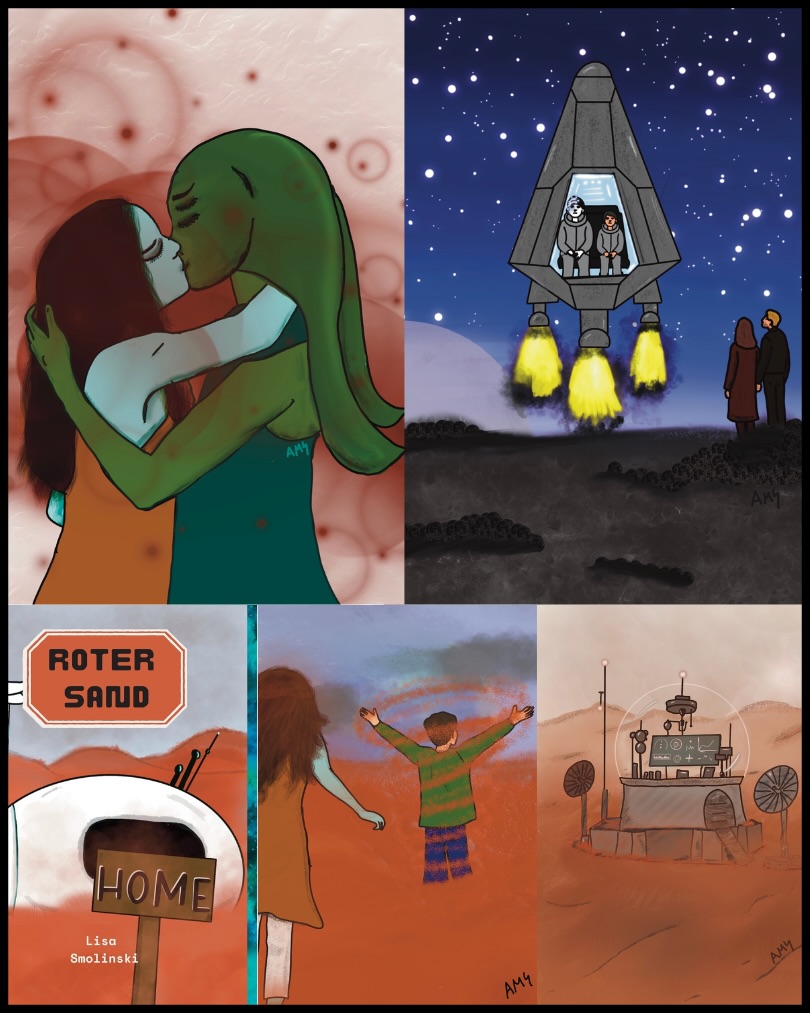 Dieses Projekt entstand für die Autorin Lisa Smolinski und ihre Geschichte spielt im Jahr 4789 – einer Zukunft, in der Menschen, Aliens und KI (ArtMinds) das Universum durch transdimensionale Reisen erschließen und der rote Sand des Mars ein eigenes Bewusstsein besitzt.