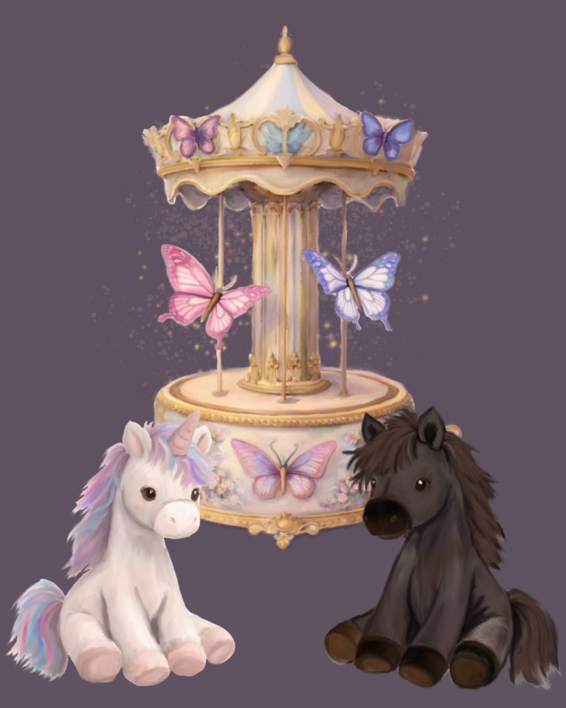 Lilly und Emma sind zwei Schwestern, deren Herzen so bunt und voller Fantasie sind wie ein Regenbogen nach einem Sommerregen. Sie mögen Pferde und Einhörner, träumen von verzauberten Wäldern. Ihre Fantasie kennt keine Grenzen. An einem schönen Sonntag gehen sie mit ihren Eltern und Tanti auf einen Trödelmarkt. Zwischen Deko und alten Büchern findet Lilly eine antike Spieluhr und ist sofort fasziniert. Doch diese Spieluhr verbirgt ein Geheimnis.